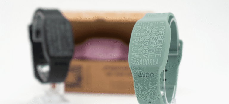 Evoq es una pulsera que vibra sutilmente en una horquilla de tiempo aleatoria, de entre 15 y 35 minutos.