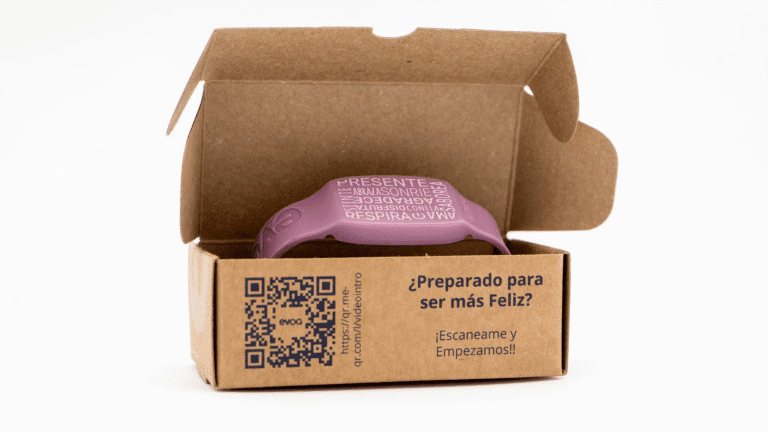 Tu pulsera Evoq, manual sencillo y packaging premium con un mensaje inspirador. Aunque lo mejor es que, con esta compra, te llevas una experiencia transformadora.